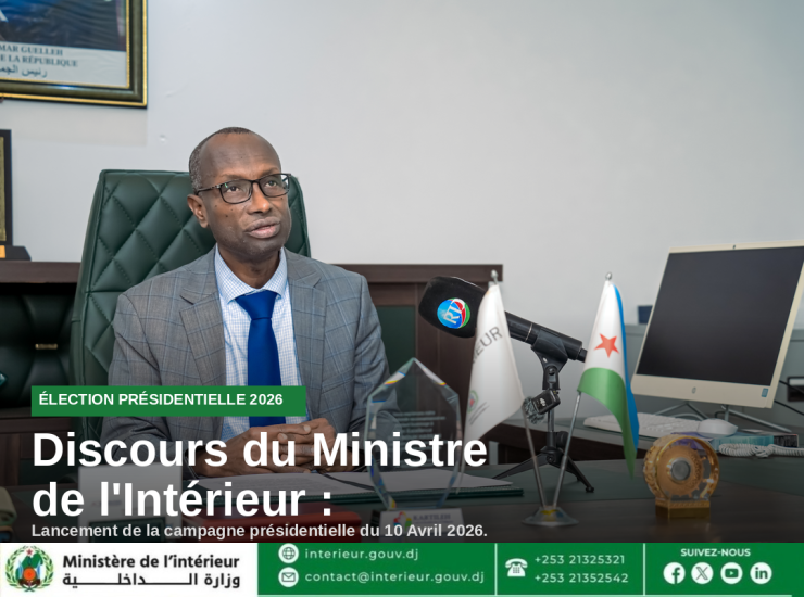 Sous l’impulsion du Président SEM Ismaïl Omar Guelleh et dans le cadre de la Vision 2035 qu’il a initiée, le Ministère de l’Intérieur œuvre à garantir la sécurité, la stabilité ainsi que la cohésion sociale à l’échelle de l’ensemble du territoire national.