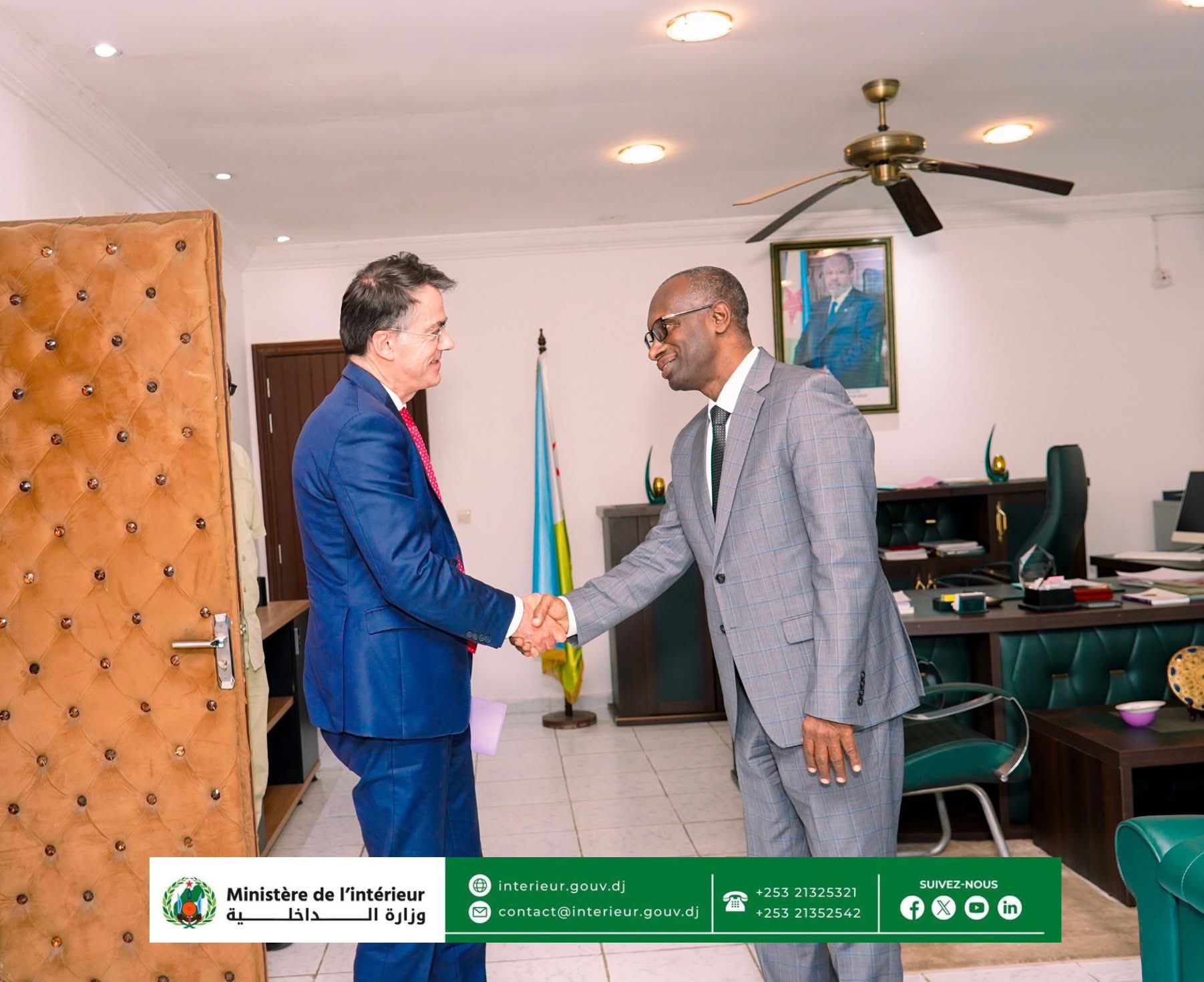 Le Ministre de lโIntรฉrieur, son Excellence ๐ฆ๐ฎ๐ถ๐ฑ ๐ก๐ผ๐๐ต ๐๐ฎ๐๐๐ฎ๐ป, a reรงu en audience, ce lundi 22 septembre le nouvel Ambassadeur de France, ๐ . ๐๐ฒ๐ฟรด๐บ๐ฒ ๐๐ฟ๐ฒ๐๐๐ผ๐ป, dans son bureau.