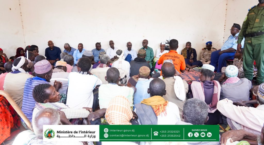 Le vendredi 16 janvier 2026, le ministre de lโIntรฉrieur, Monsieur Saรฏd Nouh Hassan, accompagnรฉ du prรฉfet de la rรฉgion de Dikhil, Hassan abdi Robleh, du vice-prรฉsident du Conseil rรฉgional de Dikhil, Gouro Ibrahim, du Directeur de la Population, Abdi Abdillahi, ainsi que des autoritรฉs civiles et militaires locales, a effectuรฉ sa visite de tournรฉe annuelle dans la localitรฉ de Dowdowya situรฉe dans la rรฉgion de Dikhil.